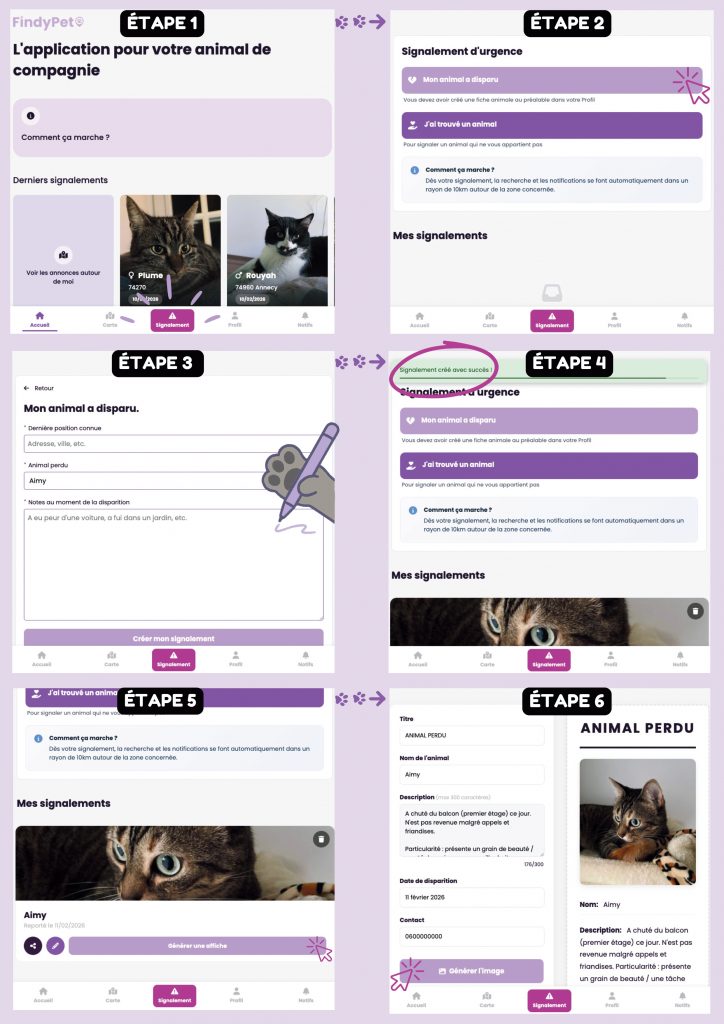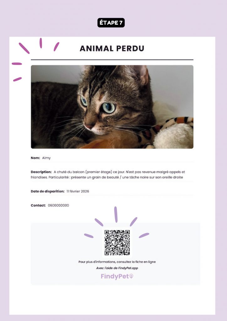 - Poser les affiches générées par FindyPet et publier ces annonces sur les réseaux sociaux et autres plateformes locales.